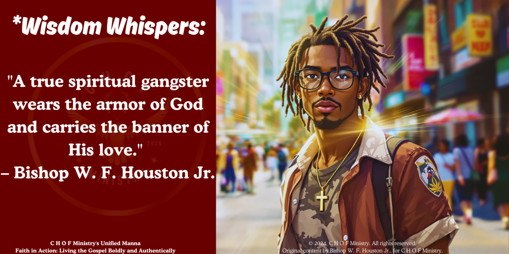As spiritual gangsters, we carry the banner of God’s Kingdom into every space we inhabit. This means living with integrity, loving with boldness, and standing firm when the world calls us to compromise. Our strength doesn’t come from ourselves—it comes from the power of God working within us. Repping God’s Kingdom isn’t just a call to action; it’s a lifestyle of unwavering faith.