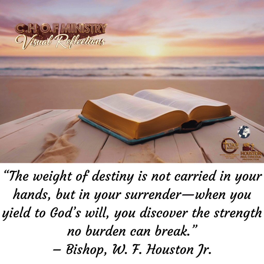 “The weight of destiny is not carried in your hands, but in your surrender. When you yield to God’s will, you discover the strength no burden can break.” – Bishop, W. F. Houston Jr.